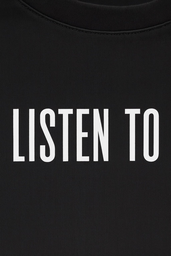 Black oversized T-shirt "Listen to me"